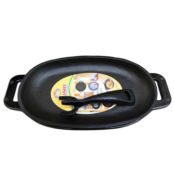 - Tên sản phẩm: Chảo Gang Oval Trung Chống Dính Kèm Đế Lót Nhựa Làm Bò Bít Tết (loại mới)