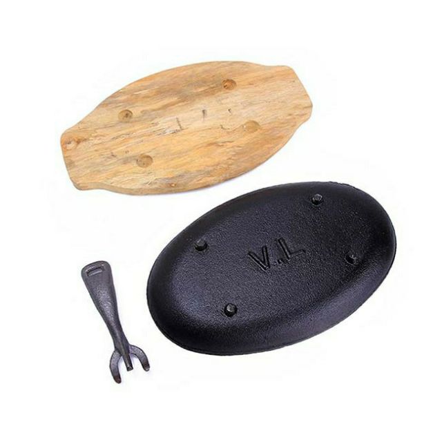 Bộ chảo gang oval chống dính kèm đế gỗXuất xứ : Việt Nam