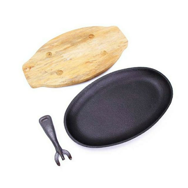Chảo Gang Oval Chống Dính Kèm Đế Gỗ