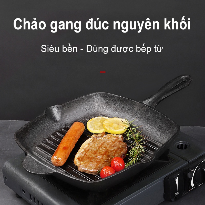 Chảo Gang Thô Đúc Thủ Công Nguyên Khối - Chảo Gang Truyền Thống Làm Bít Tết Siêu Bền Dùng Được Với Bếp Từ VT124
