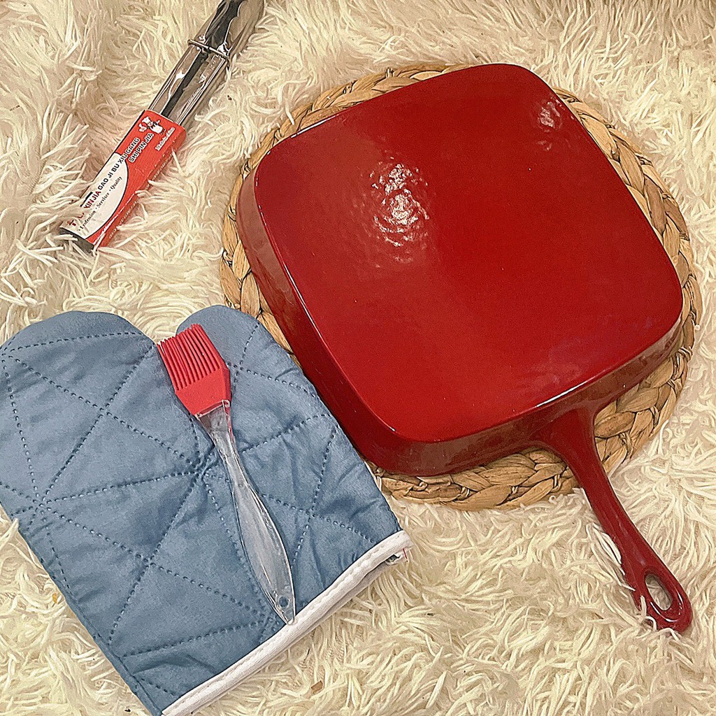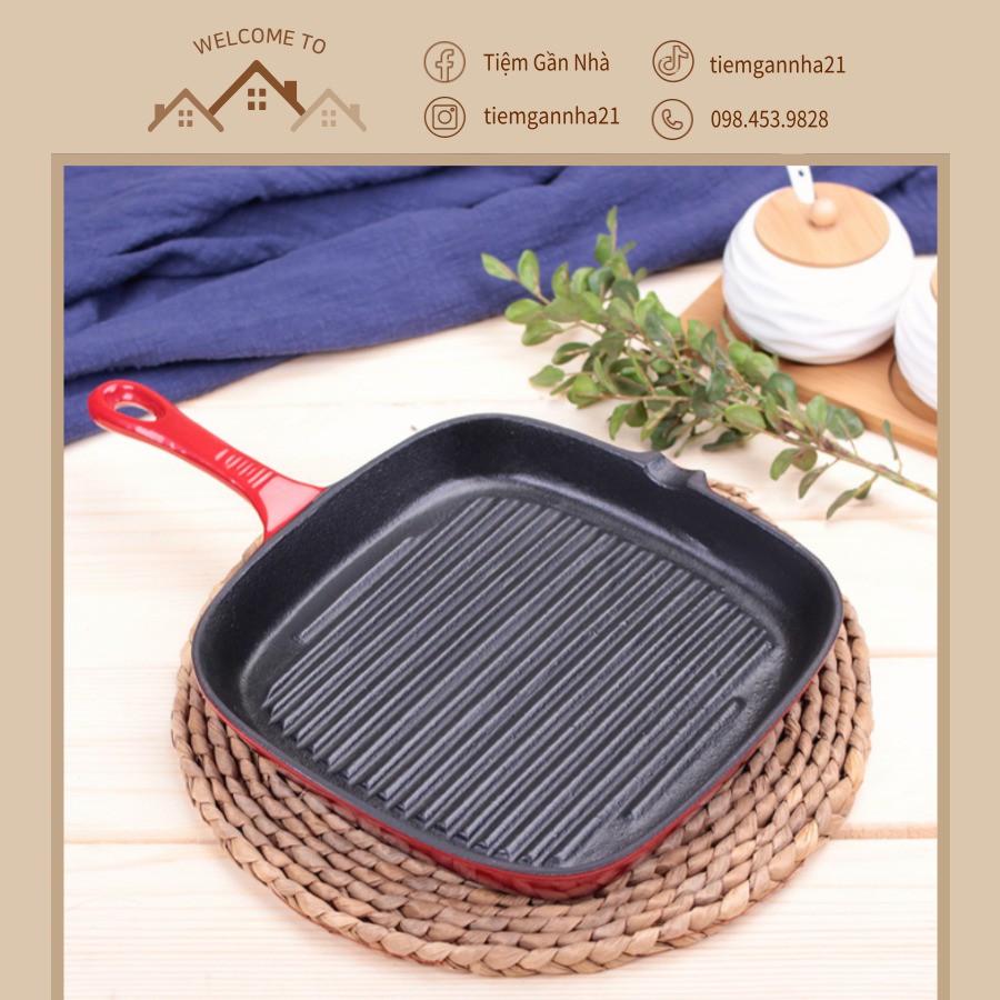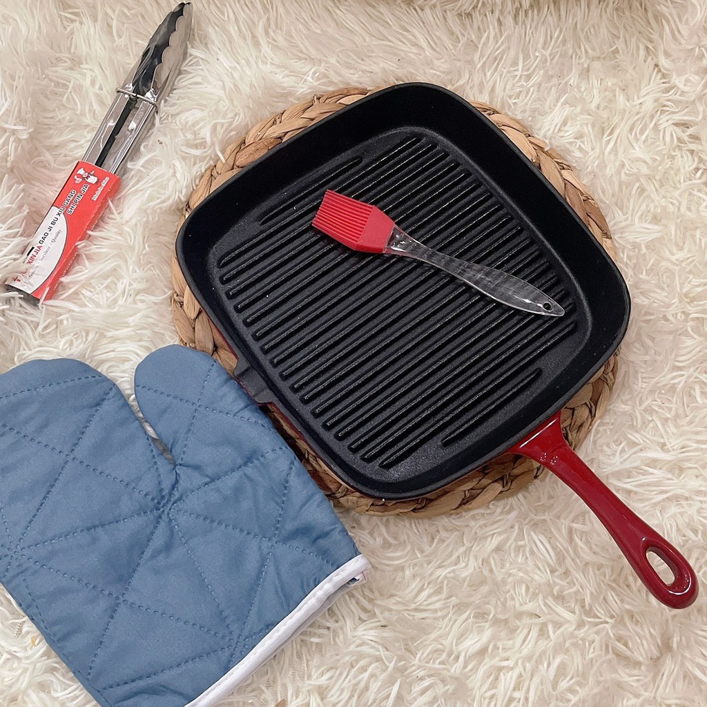 Nhà cửa & Đời sống > Dụng cụ nhà bếp > Chảo || Chảo gang tráng men siêu dày chống dính, chảo sọc làm beef steak bít tết TẶNG KÈM 3 DỤNG CỤ BẾPCòn hàng