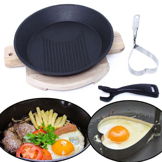 Nhà cửa & Đời sống > Dụng cụ nhà bếp > Chảo || Bộ chảo gang tròn chống dính bít tết đế gỗ DragonCòn hàng