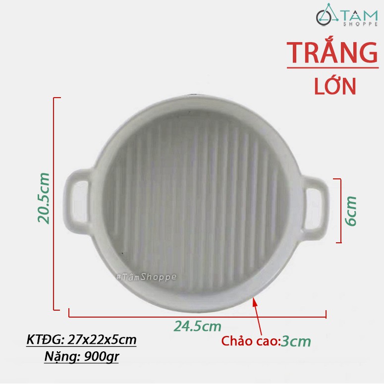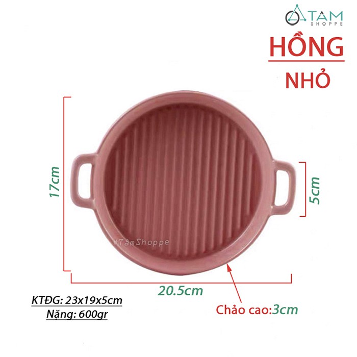 – Kích thước SP: Chảo Nhỏ: ĐK 17cm/ Dày 3cm – Chảo Lớn: ĐK 20cm/ Dày 3cm