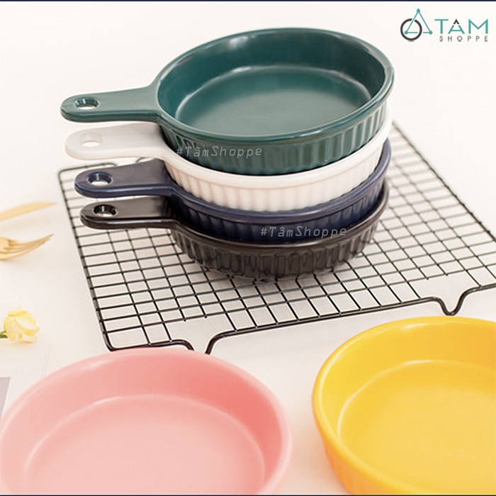 Chảo gốm sứ cao cấp tròn có tay cầm trơn màu Nordic Style