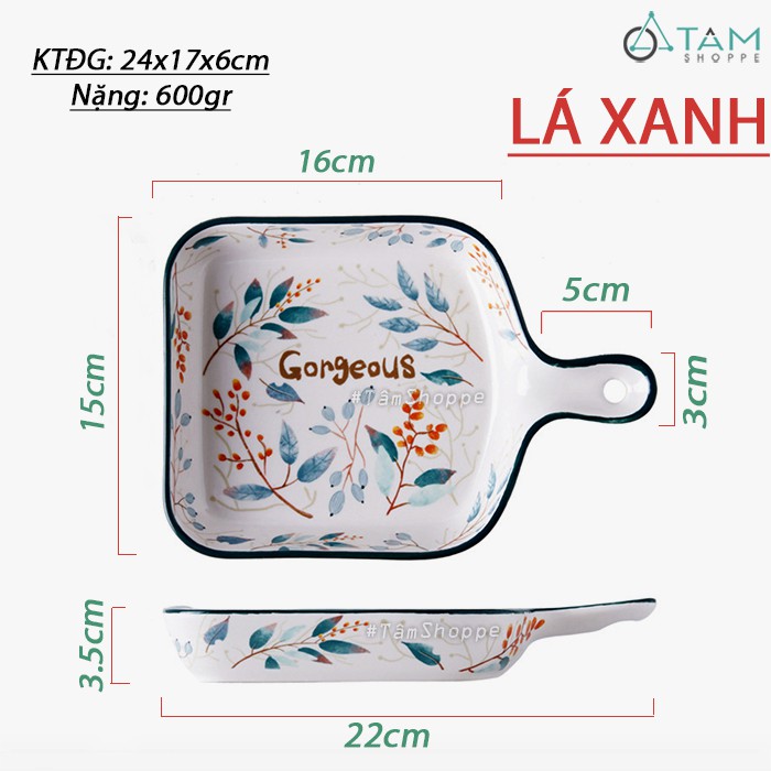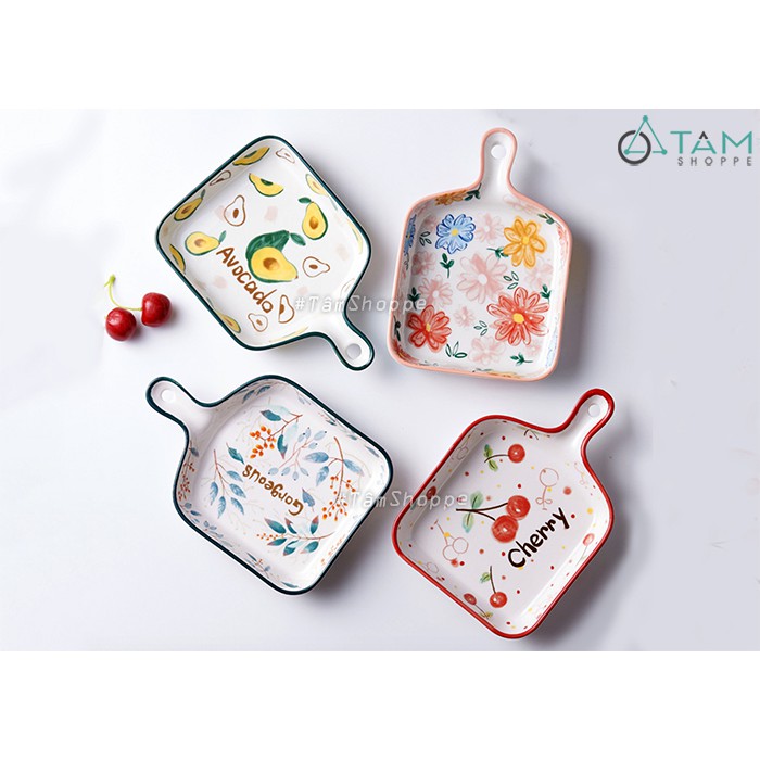 Chảo gốm sứ cao cấp vuông có tay cầm vẽ họa tiết Summer Style