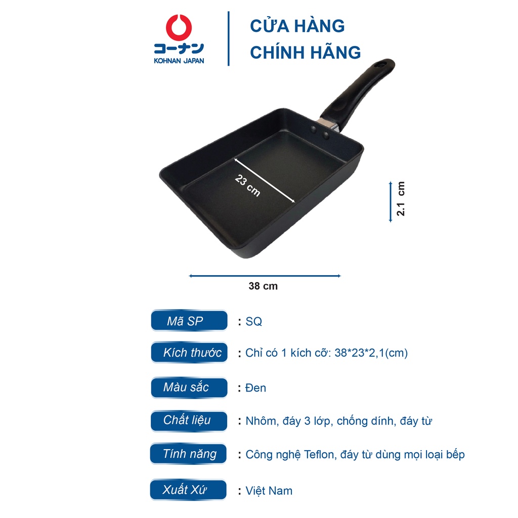 - Chảo từ chống dính chịu nhiệt vuông KOHNAN chuyên dùng để cuộn trứng, chiên trứng, làm bánh đều rất tiện lợi...