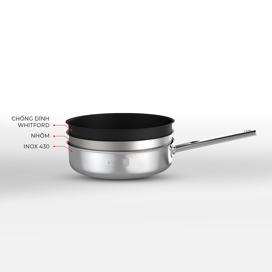 [Mã LIFECPMALL giảm 12% đơn 250K] Chảo Inox 2 lớp cao cấp đáy liền Tri-max XS EL-3752 size 24cm
