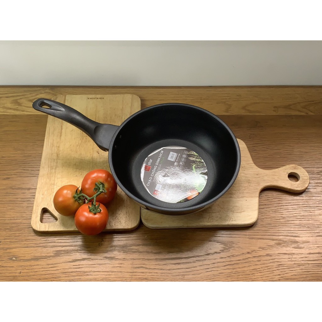 Chảo thiết kế sâu lòng, thích hợp để chiên, xào thức ăn. Dầu mỡ sẽ không văng ra ngoài khi nấu