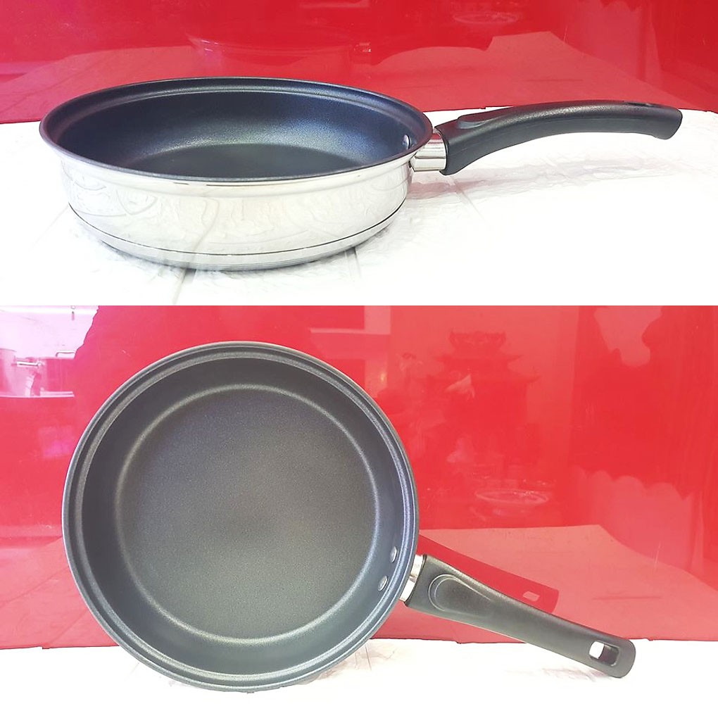 - Chảo 24cm: Ø24 x H 6cm ( cán dài 18.5cm ) Đường kính đáy chảo : Ø21.5cm, Trọng lượng: 840gr