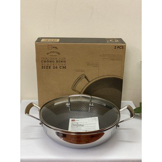 Chất liệu: Inox 304, 3 lớp đáy liền, lòng phủ chất chống dính công nghệ Blackcube Hàn Quốc, vung kính cường lực, quai tán