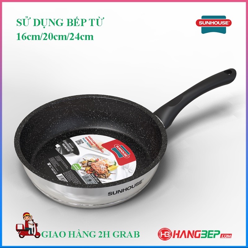 Chảo Inox 5 đáy chống dính Sunhouse 16cm/20cm/24cm/26cm IN16M4-IN20M4-IN24M4-IN24M6 - sử dụng tất cả các Bếp