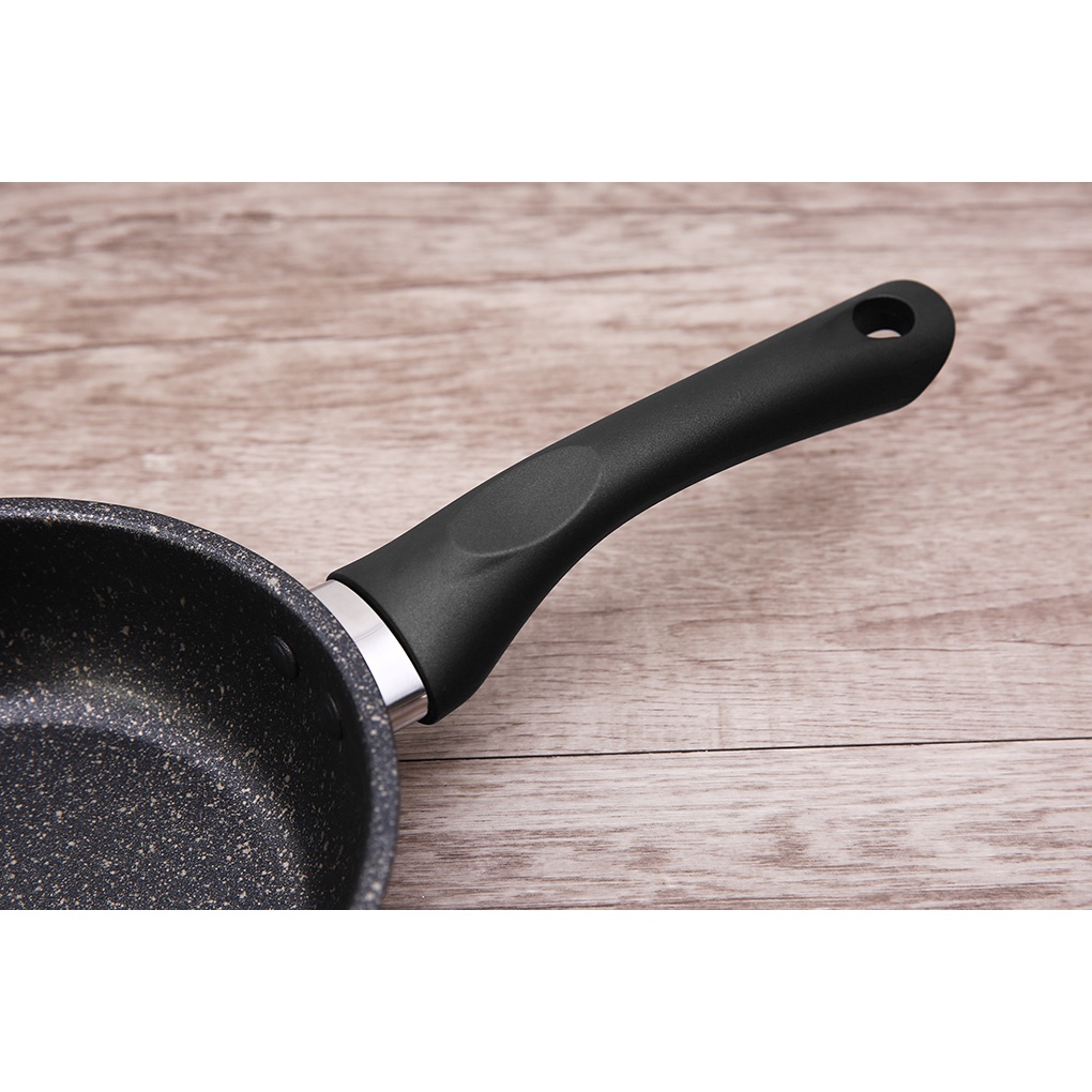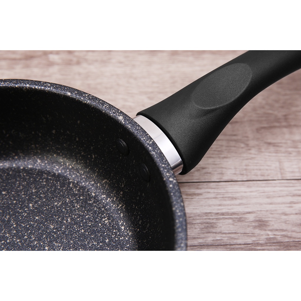 •Chảo chống dính 5 đáy, đáy bằng inox 430 bắt từ tốt, giữ nhiệt lâu. Đáy dạng phẳng tăng diện tích tiếp xúc với bề mặt bếp giúp tỏa nhiệt đều, chín nhanh.