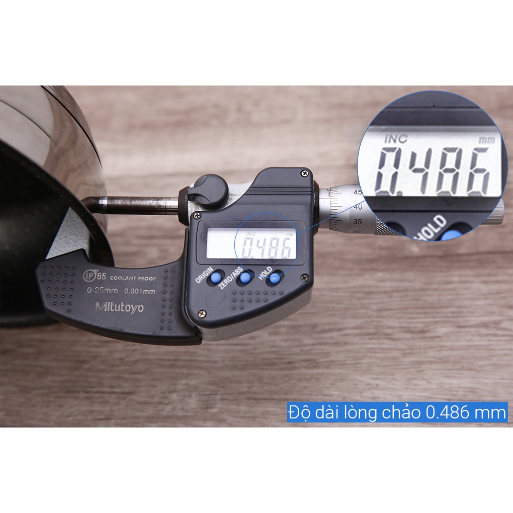 •Thành chảo inox 201 dày 0.486 mm dày bền, hạn chế biến dạng, móp méo