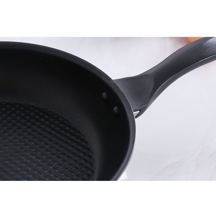 + Bề mặt chảo phủ lớp chống dính an toàn, bền bỉ. Thiết kế nhám giúp chảo chiên tiết kiệm dầu tối ưu, có thể chiên thịt không dầu ngon như món nướng.