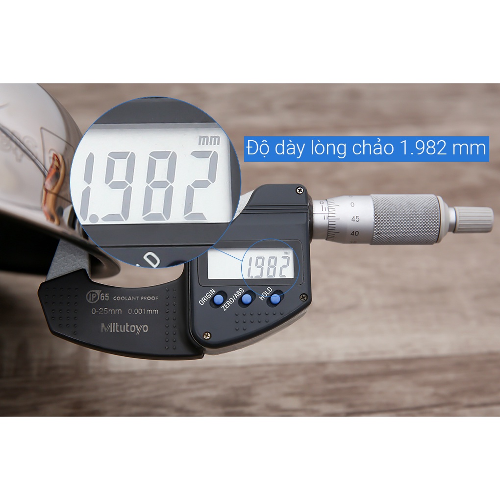 •Độ dày lòng chảo 1.982 mm hạn chế móp méo tốt, giữ nhiệt hiệu quả khi nấu ăn