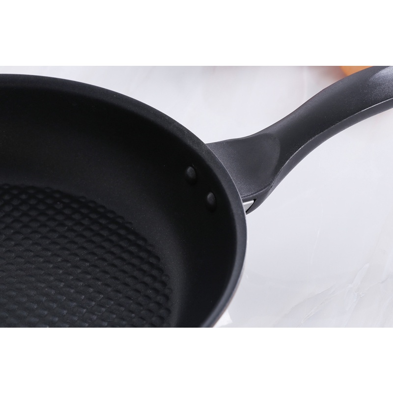 - Cấu tạo đáy chảo 3 lớp giúp thu nhiệt nhanh, tỏa nhiệt đều nên khi sử dụng, nhiệt lượng không tập trung quá nhiều ở chính giữa chảo, giúp tránh tình trạng dễ bén, cháy thực phẩm trong quá trình nấu nướng và không gây hiện tượng cong phồng đáy khi gặp nhiệt độ cao.