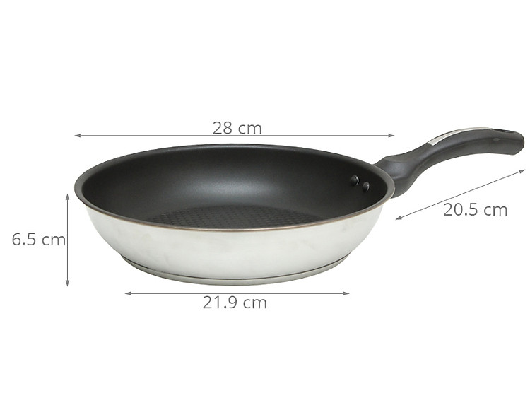 Đường kính chảo là 28 cm, giúp người dùng chiên, xào các loại rau củ, thịt cá, có thể cùng lúc chiên 4 - 6 quả trứng ốp la, 4 - 6 cánh gà
