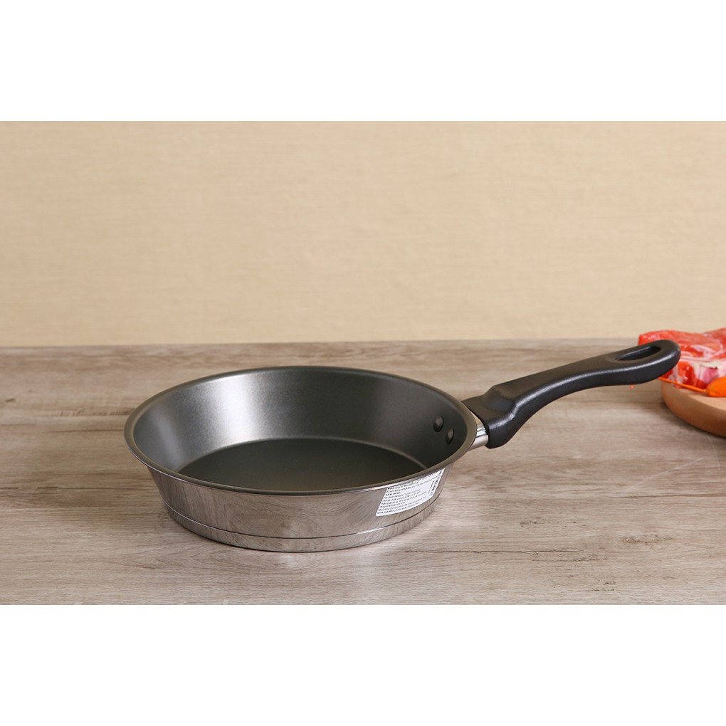- Chất liệu: inox cao cấp sáng bóng, phủ chống dính. Tay cầm chảo bằng nhựa Bakelite chịu nhiệt