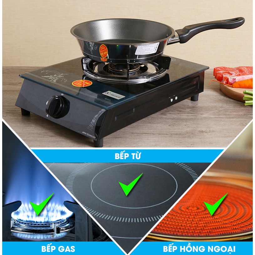 Nhờ cấu tạo inox tiêu chuẩn, có thể dùng được trên tất cả các loại bếp, bao gồm bếp gas, bếp hồng ngoại và bếp điện từ.