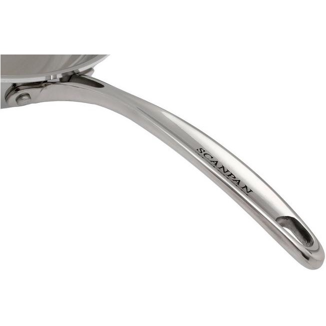 Tay cầm chống nóng: Chảo inox Scanpan Fusion5 được làm bằng inox đặc hoàn toàn và được cố định bằng đinh vit đảm bảo vững chắc, tay cầm chống nóng ngay cả khi bạn sử dụng trên bếp ga hay trong lò nướng (an toàn ở nhiệt độ 260 độ C)