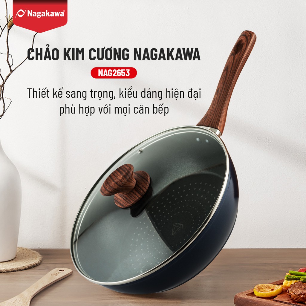 Nhà cửa & Đời sống > Dụng cụ nhà bếp > Chảo || Chảo kim cương đáy từ sâu lòng có vung kính 26cm Nagakawa NAG2653Còn hàng