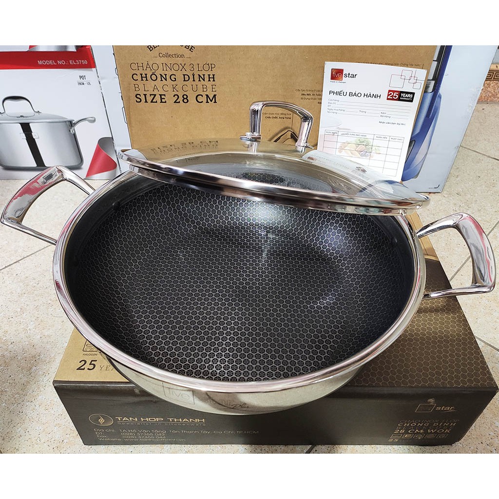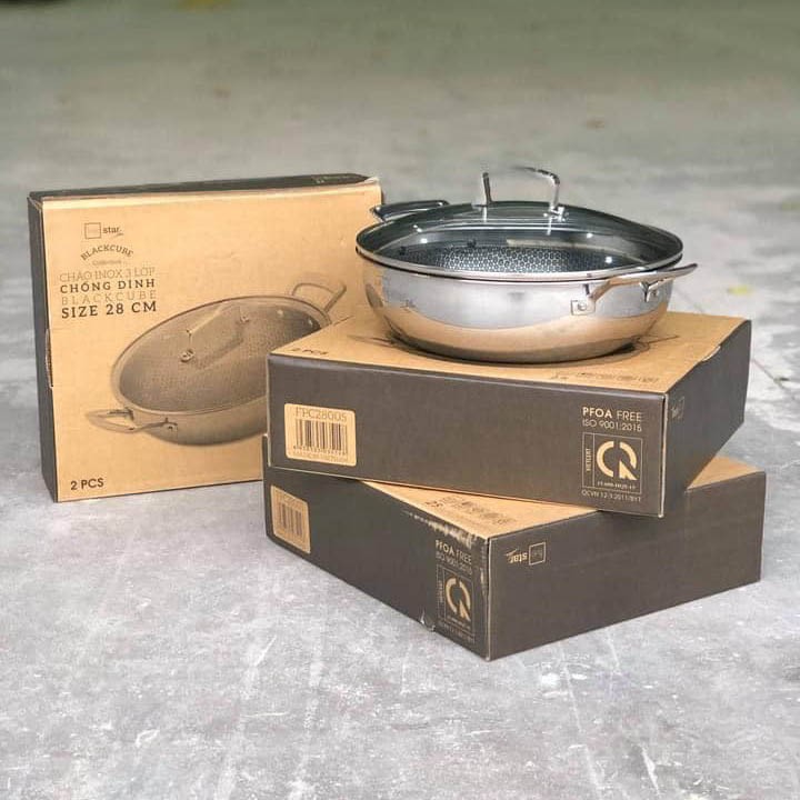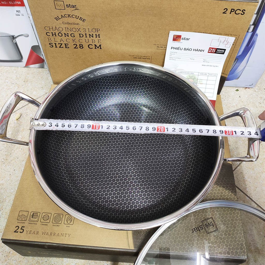 - Chảo lẩu Inox 304 sâu lòng đáy liền 3 lớp Fivestar Blackcube siêu bền , chống trầy xước
