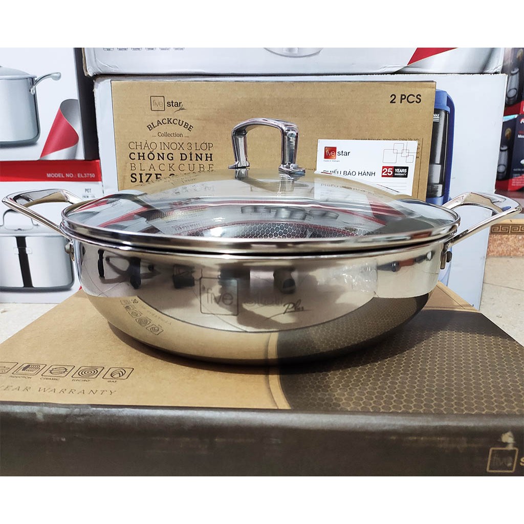 Nhà cửa & Đời sống > Dụng cụ nhà bếp > Chảo || Chảo lẩu 2 quai Inox 304 sâu lòng đáy đúc liền 3 lớp Fivestar Blackcube đường kính 24/26/28cm bảo hành chính hãng 25 nămCòn hàng