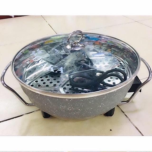 Chảo lẩu điện đa năng nồi lẩu tròn vân đá kèm hấp xửng 30cm