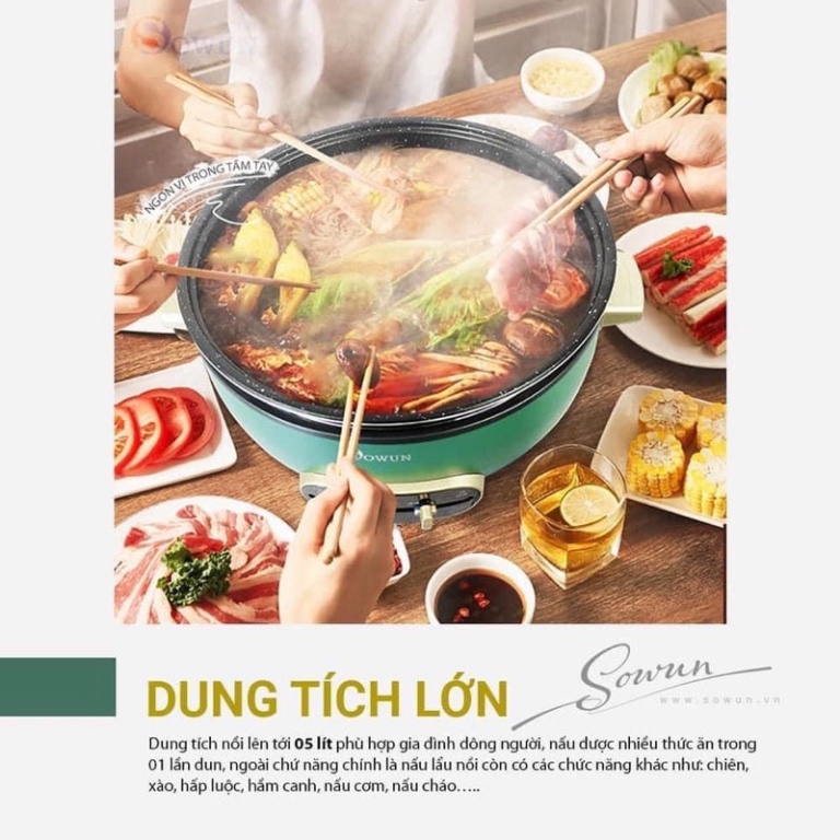 Thiết Bị Điện Gia Dụng > Đồ gia dụng nhà bếp > Nồi nấu đa năng || CHẢO LẨU ĐIỆN ĐA NĂNG VÂN ĐÁ HOA CƯƠNG 5L Sowun Sw6020Còn hàng