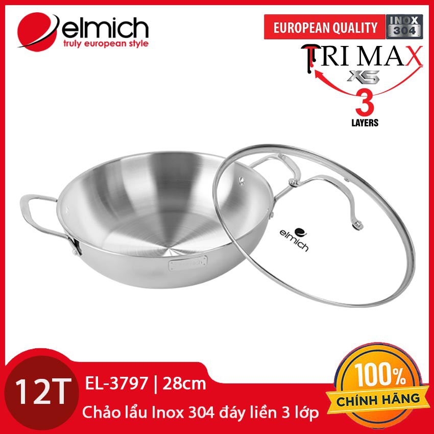 Nhà cửa & Đời sống > Dụng cụ nhà bếp > Chảo || Chảo lẩu Inox 304 cao cấp 3 lớp đáy liền Elmich Tri-Max EL-3797 size 28cm vung kính, hàng chính hãng, bảo hành 12 thángCòn hàng