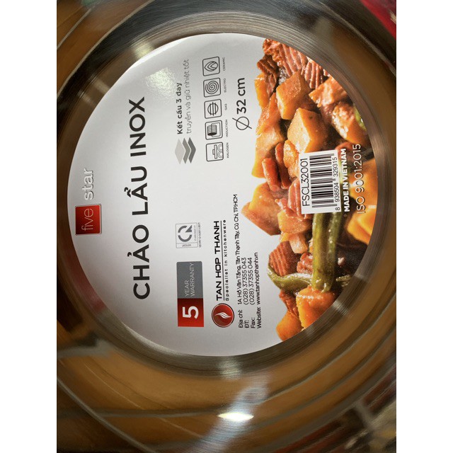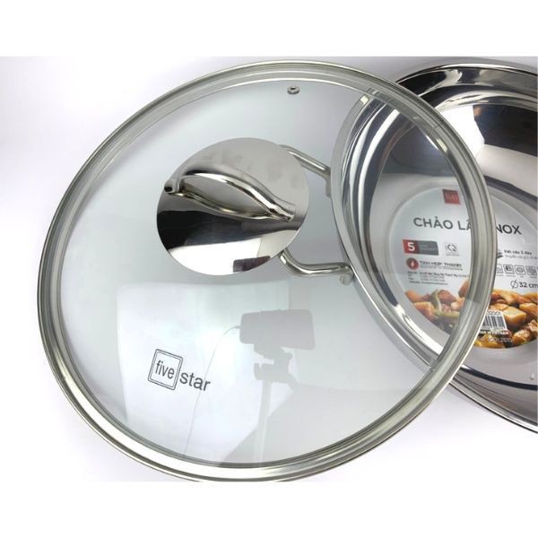 Nhà cửa & Đời sống > Dụng cụ nhà bếp > Chảo || Chảo lẩu inox sâu lòng inox Fivestar nắp kính ( 32cm ) , 3 đáy dùng được bếp từ, hồng ngoại , gasCòn hàng