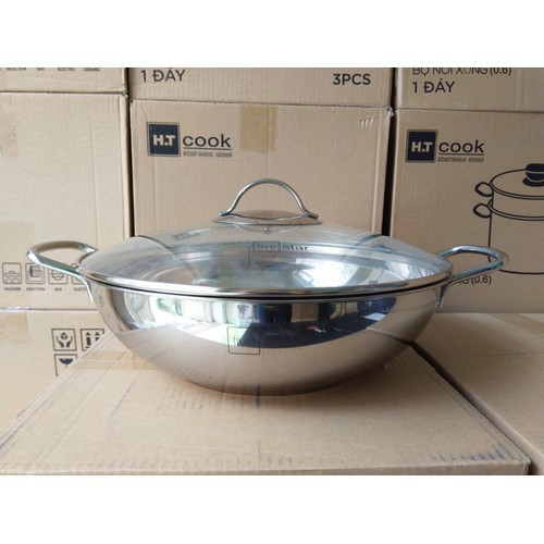 "nồi lẩu inox"Chảo lẩu xào sâu lòng 3 đáy inox 430 Fivestar bếp từ nắp kính ( 32cm )