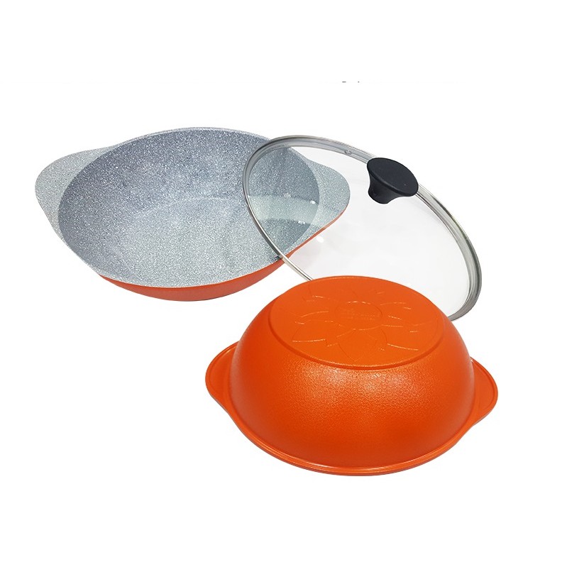 Chảo lẩu sâu lòng đế từ 2 tay cầm bằng đá ceramic 28cm kèm nắp (dùng được tất cả các loại bếp - ko kén bếp)