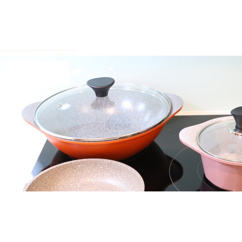 Giới thiệu Chảo lẩu sâu lòng đế từ 2 tay cầm bằng đá ceramic 28cm kèm nắp (dùng được tất cả các loại bếp - ko kén bếp)