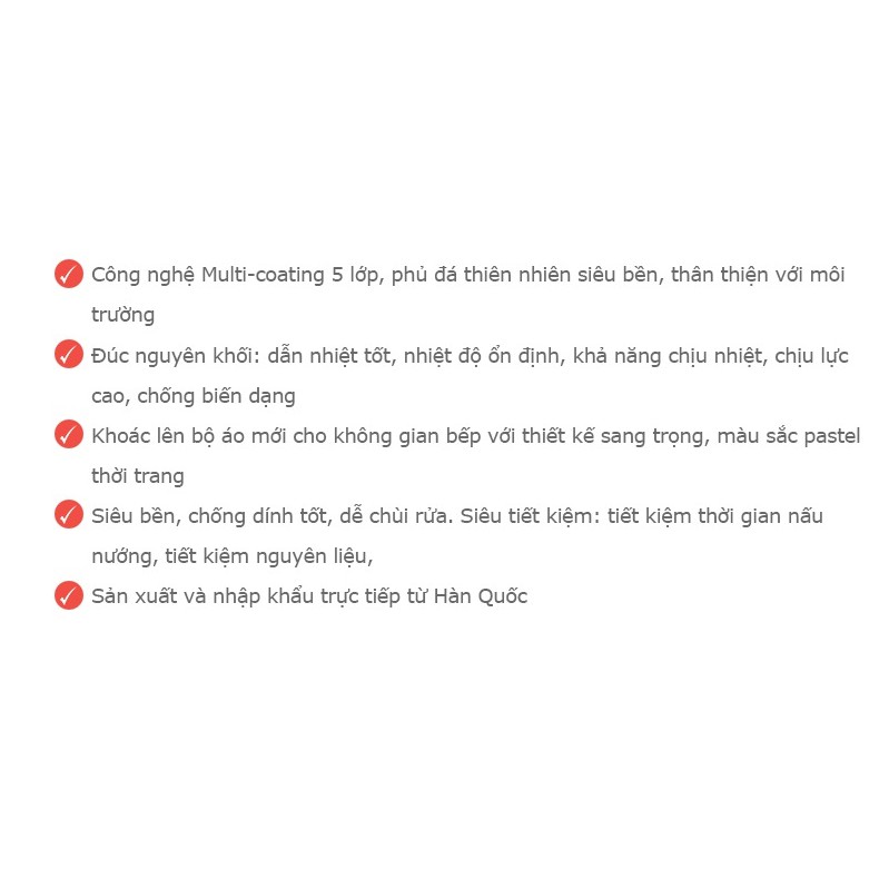 Chống dính vượt trội, hạn chế sử dụng dầu mỡ khi ăn, an toàn cho sức khỏeLớp phủ đá thiên nhiên