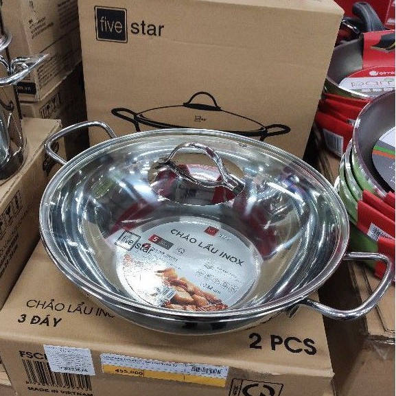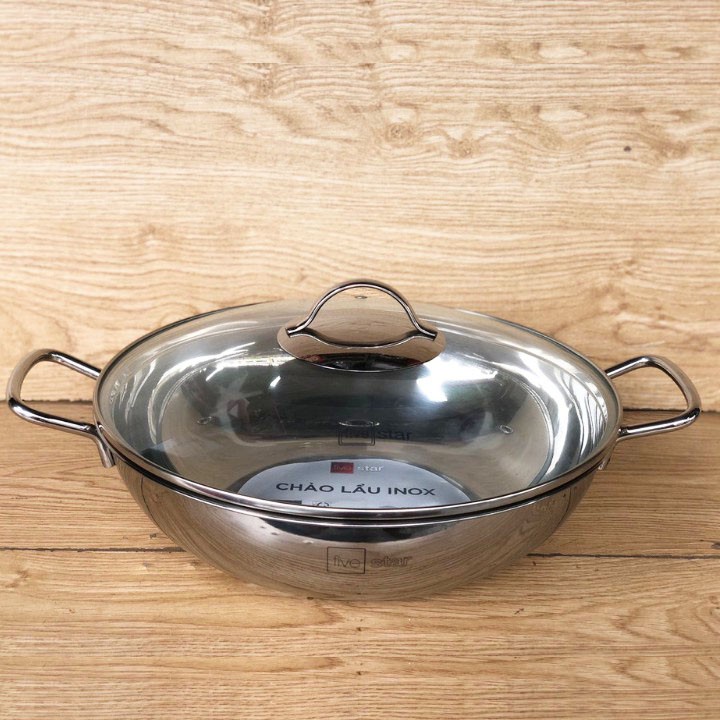 Nhà cửa & Đời sống > Dụng cụ nhà bếp > Chảo || Chảo lẩu xào sâu lòng inox 3 đáy Fivestar 26cm, 28cm, 32cm Đáy từ Vung kính, Bảo Hành 5 NămCòn hàng