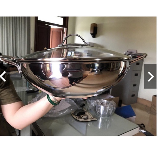Với chất liệu inox 430 và đáy 3 lớp giúp truyền nhiệt tốt, chống cháy. Bạn có thể sử dụng làm chảo xào rất tiện lợi và an toàn