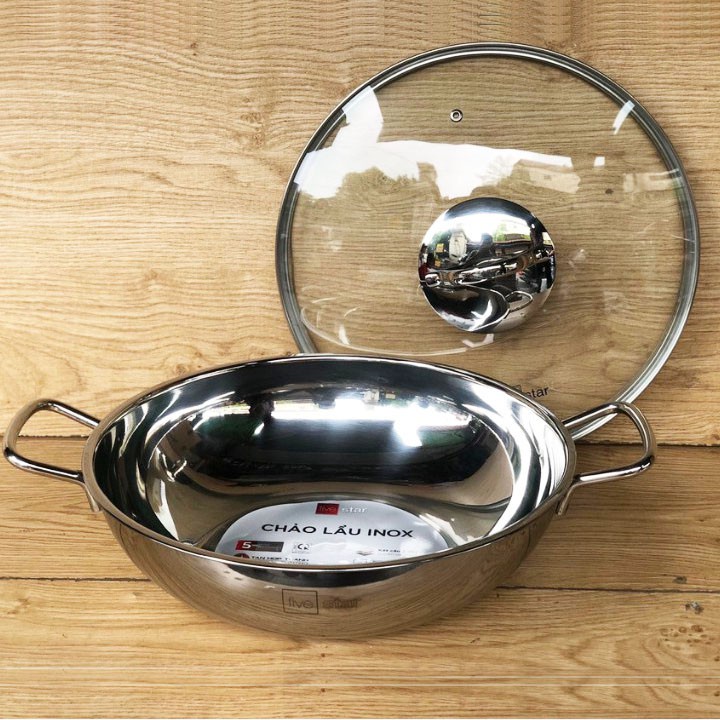 THÔNG TIN SẢN PHẨMChảo Lẩu Inox 430 Fivestar 26cm, 28cm, 32cm -3 Đáy Lắp Kính dùng bếp từ