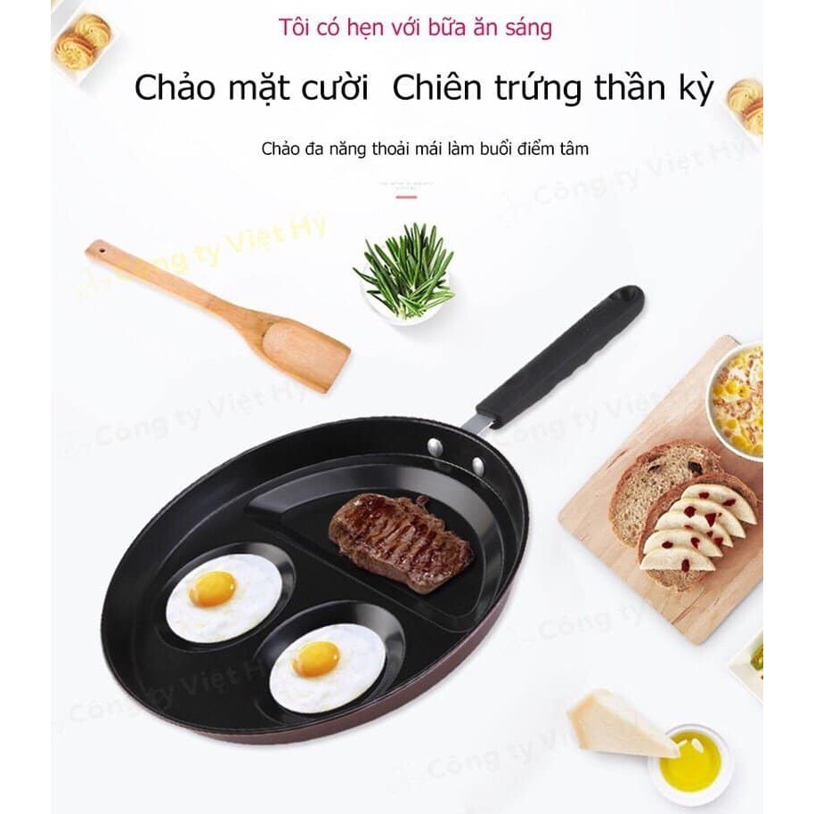 Tên sản phẩm: Chảo 3 Khoang Chống Dính Mặt Cười- Chảo rán chống dính đa năng 3 ngăn tiện dụng với công nghệ sản xuất hiện đại có thể chịu nhiệt đến 300 độ C, giữ nhiệt tốt giúp tiết kiệm năng lượng khi nấu.