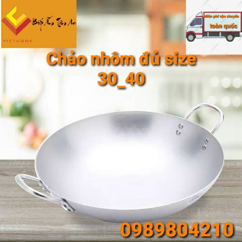 Chảo nhôm 2 quai xi bóng Vietcook đủ size 30,32,34,36,38,40,chảo bầu nhôm 2 quai CHÍNH HÃNG ,hàng dày dăn bóng đẹp