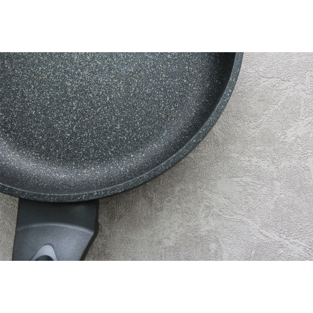 •Thân chảo làm bằng hợp kim nhôm tráng đá hoa cương giúp tản nhiệt đều. Đáy chảo được thiết kế chống trượt an toàn khi sử dụng. Khối lượng chảo 0.7 kg, dễ dàng cầm nắm và di chuyển chảo khi nấu nướng.