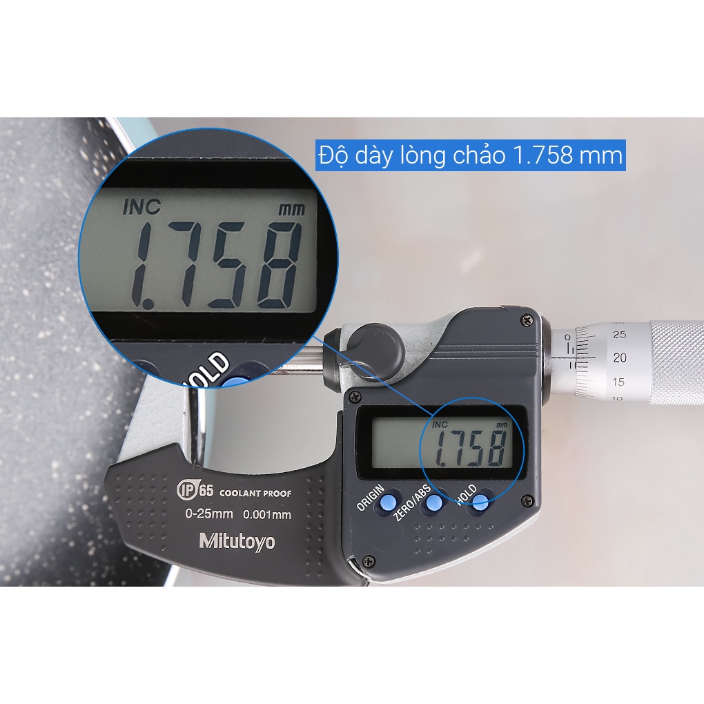 •Độ dày lòng chảo 1.758 mm hạn chế móp méo tốt, giữ nhiệt hiệu quả khi nấu ăn.