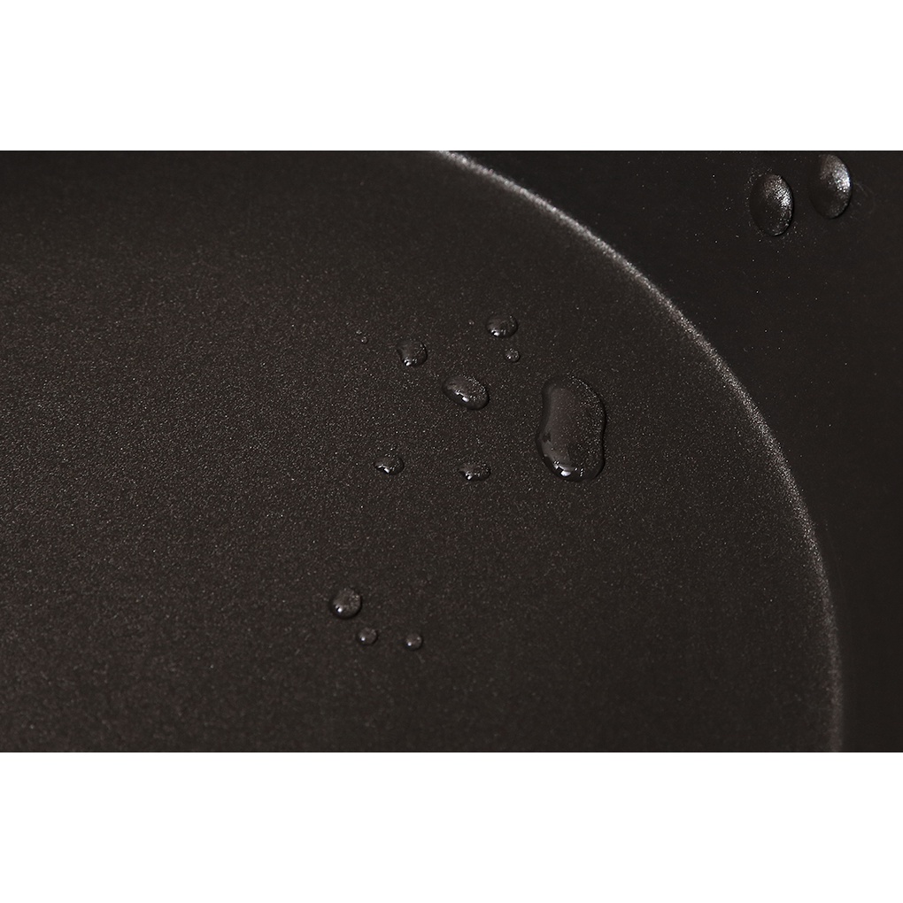 •Bề mặt chảo bằng lớp chống dính đen nhám trơn phủ sơn PTFE chịu nhiệt tối đa 300 °C. Bền bỉ, hạn chế cháy dính thực phẩm, đảm bảo an toàn sức khỏe, dễ dàng vệ sinh.