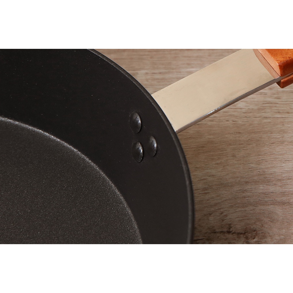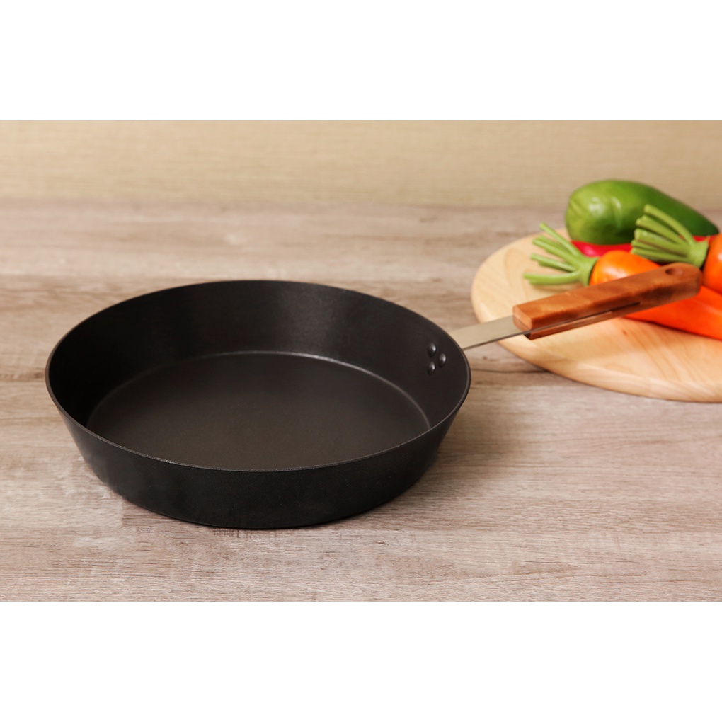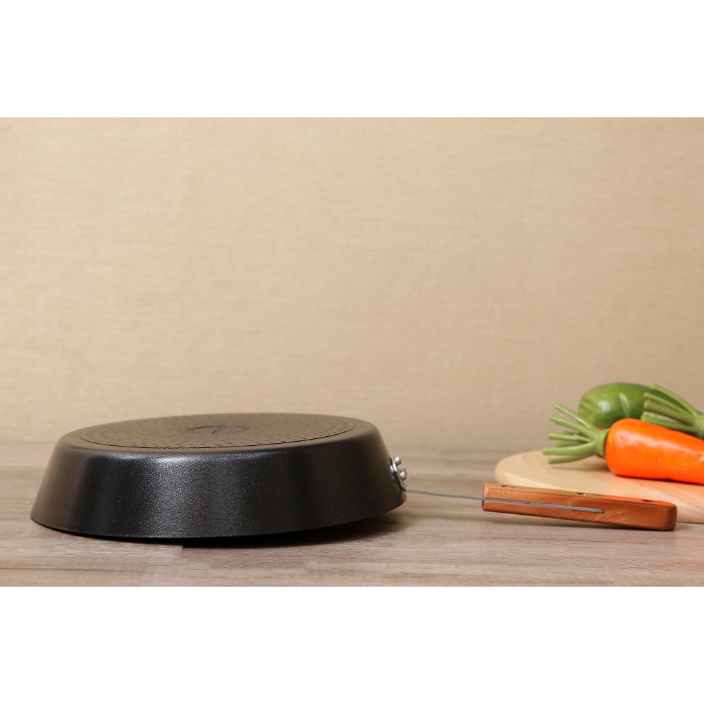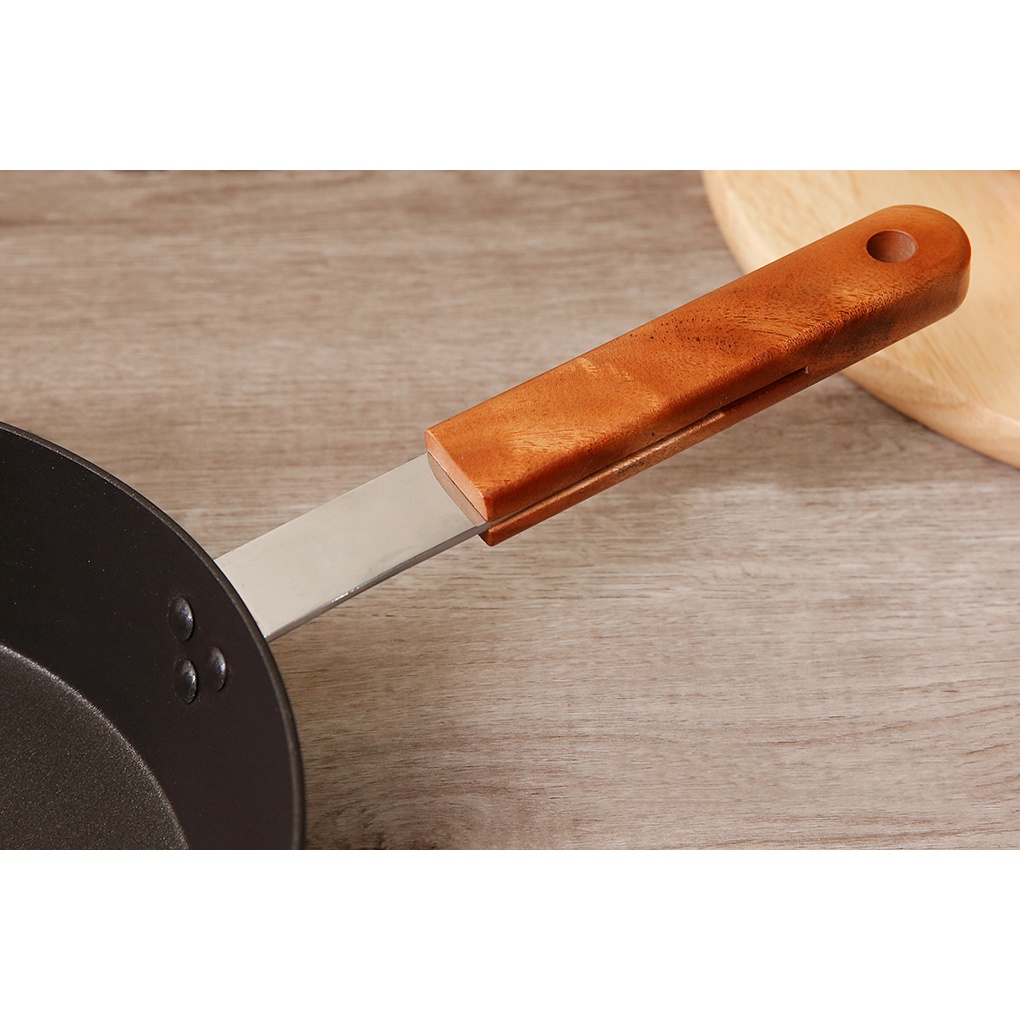 •Tay cầm chảo dài, bọc cách nhiệt vân gỗ đẹp mắt, tiện sử dụng khi nấu ăn, tránh nóng bỏng