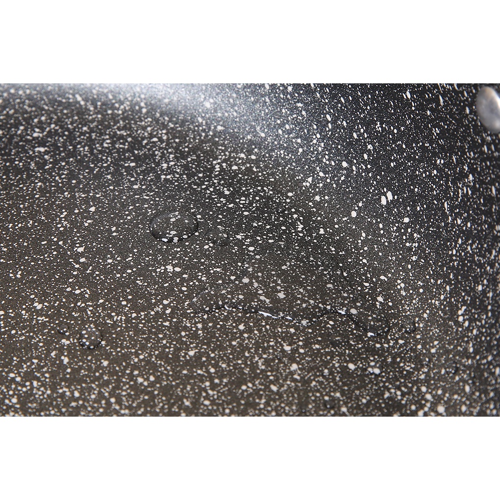 •Chảo chống dính bằng hợp kim nhôm, bề mặt là lớp chống dính vân đá phủ sơn Whitford Xylan chịu mức nhiệt tối đa 380 °C. Bền bỉ, hạn chế cháy dinh thực phẩm, đảm bảo an toàn sức khỏe và tiện vệ sinh sau khi dùng.