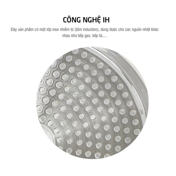 - Đáy sản phẩm có một lớp inox nhiễm từ (tấm induction), dùng được cho các nguồn nhiệt khác nhau như bếp gas, bếp từ,…