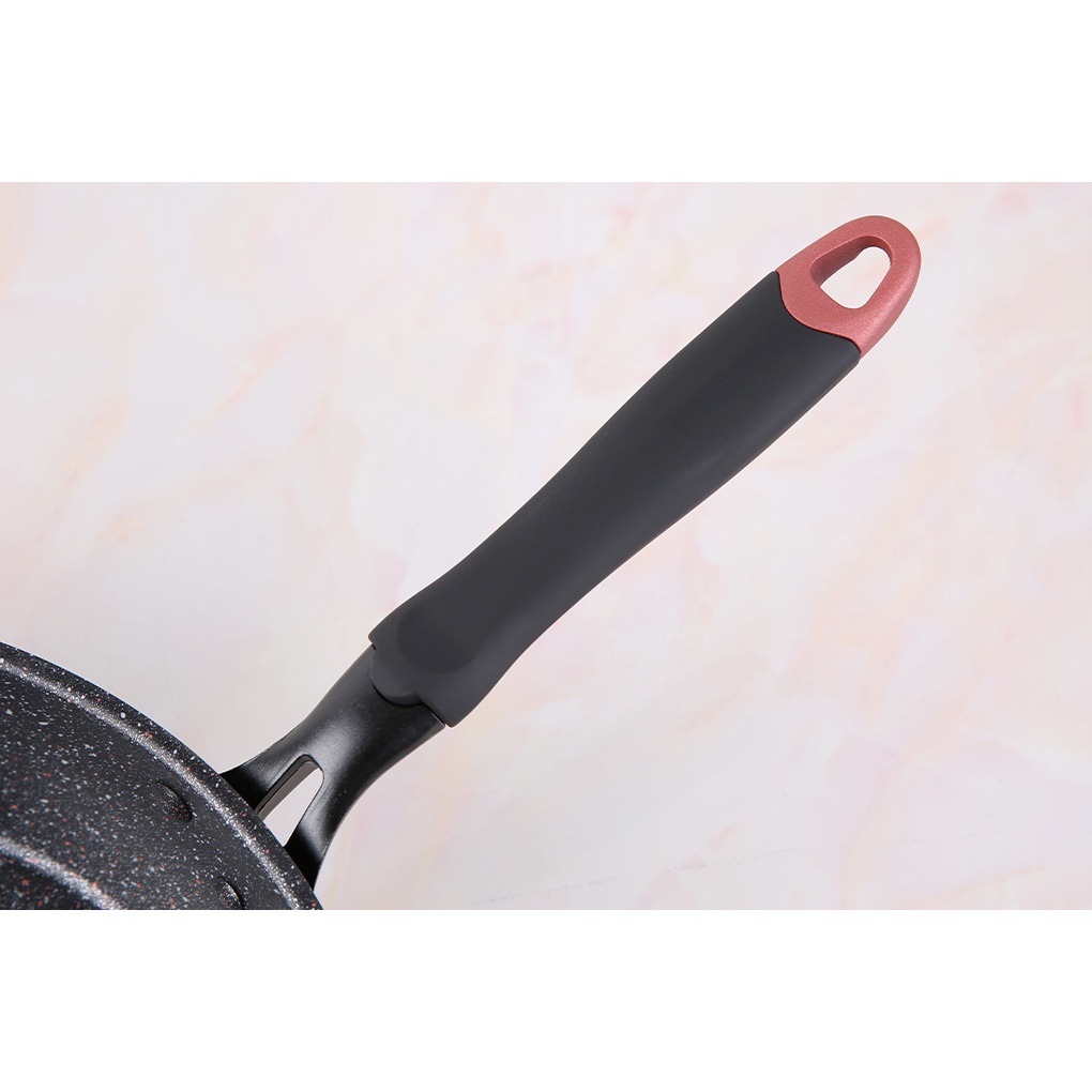•Tay cầm silicon chống cháy, chống nóng, gắn chặt vào chảo, di chuyển linh hoạt, thoải mái. Trang bị lỗ treo móc cho bạn cất giữ chảo trên tường, kệ thuận lợi.