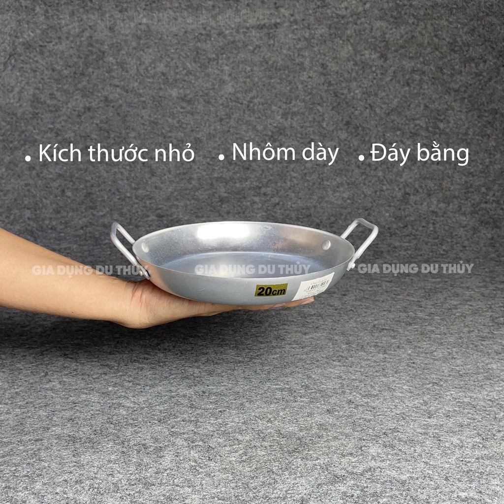 Chảo nhôm đáy bằng size nhỏ 20 cm thích hợp chiên trứng thương hiệu nhôm cao cấp Kim Cương của gia dụng Du Thủy