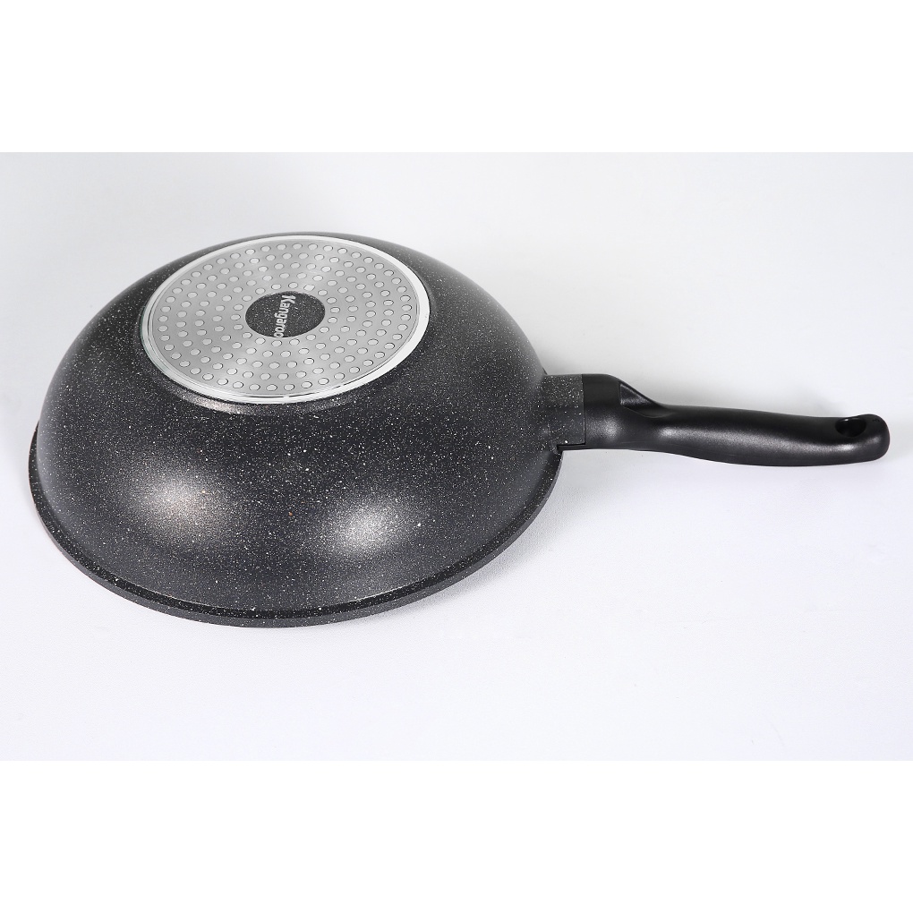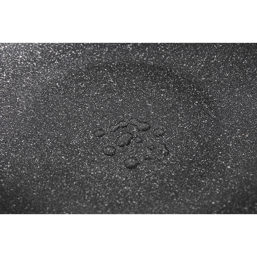 •Chất liệu hợp kim nhôm phủ chống dính vân đá chống trầy xước, độ bền cao, an toàn cho sức khỏe. Trên mặt chảo có lớp phủ gồm những hạt đá nhỏ tự nhiên được trộn chung với lớp chống dính, ít bị mài mòn, giữ nhiệt tốt, vệ sinh dễ dàng.