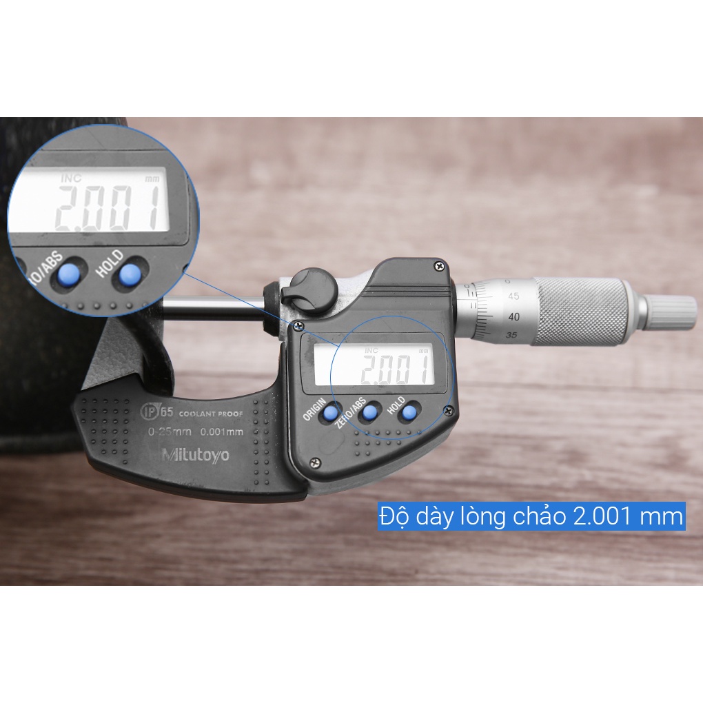 •Độ dày chảo 2.001 mm hạn chế biến dạng do va đập đồng thời giữ ấm tốt